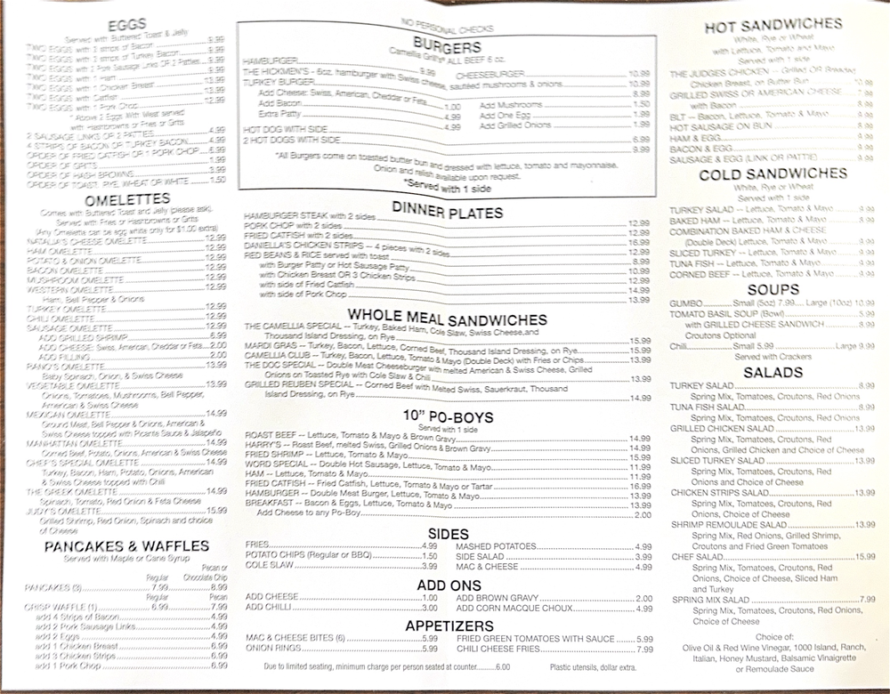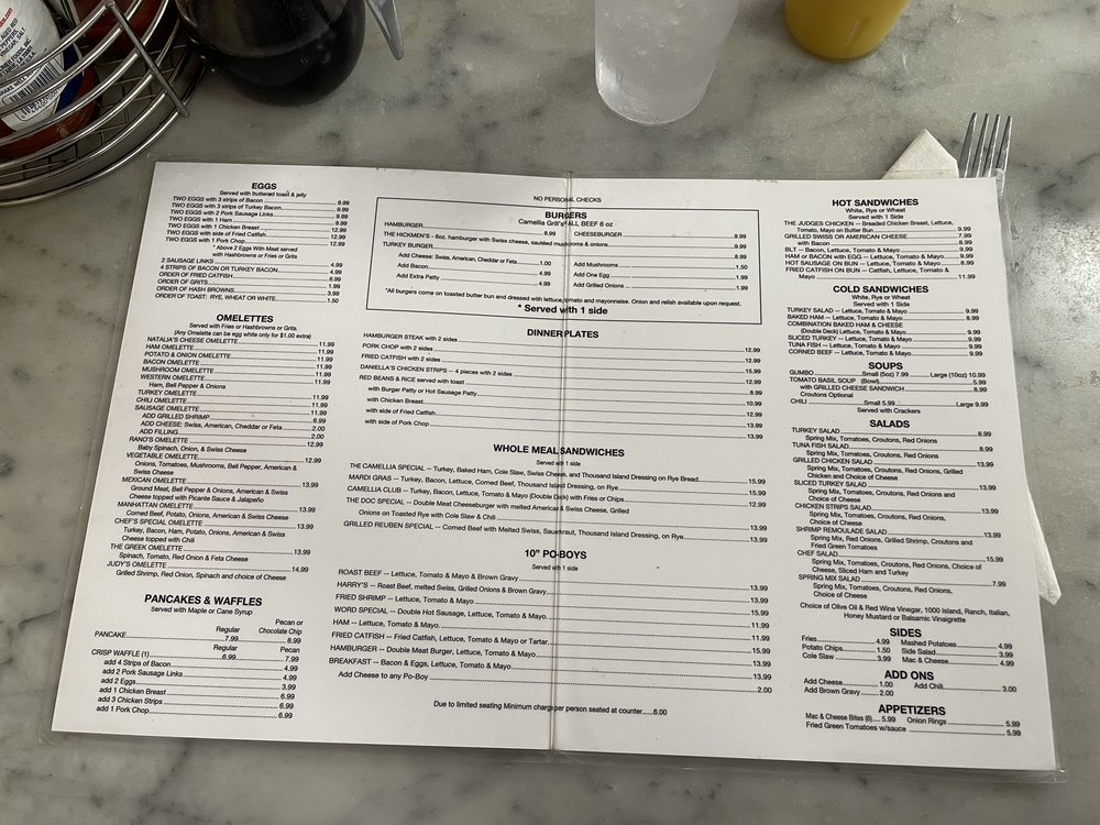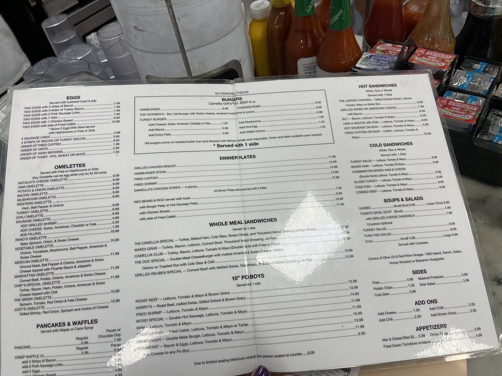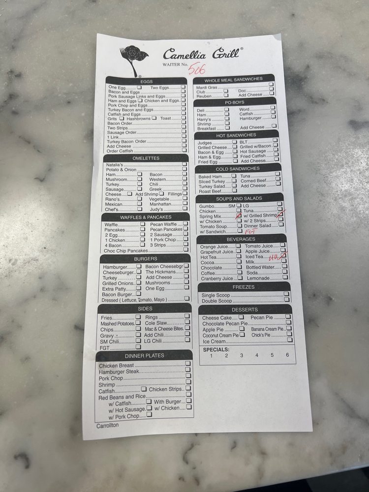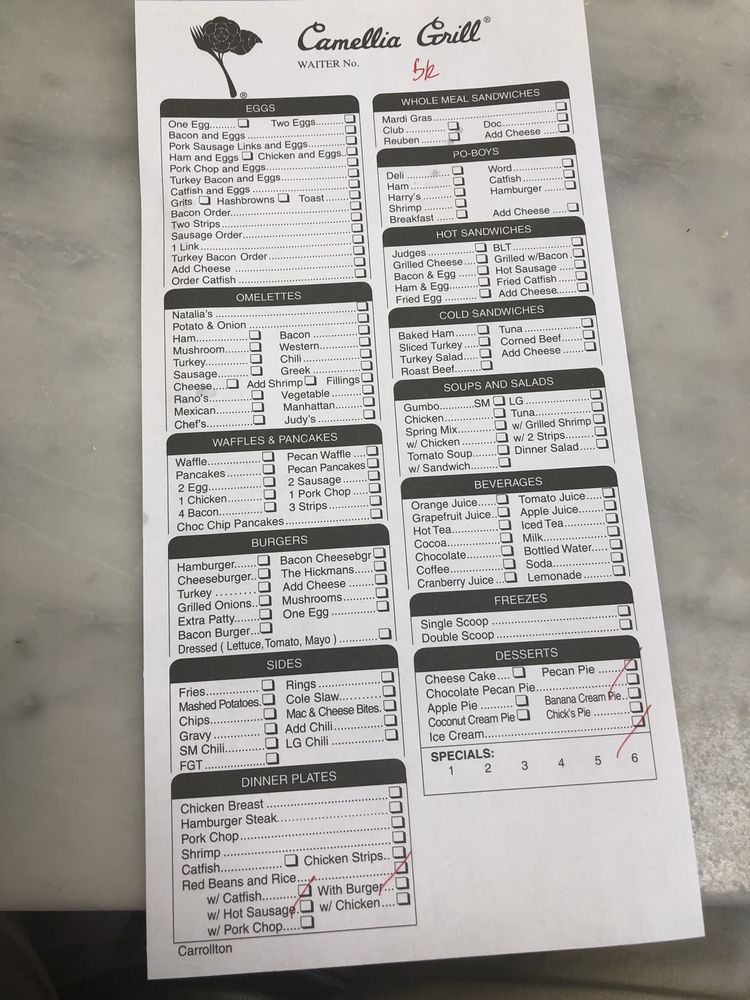 Introducing The Camellia Grill, a cozy diner in the Garden District of New Orleans. Known for its cool diner vibe with counter seating, this spot offers a variety of breakfast options like eggs, omelettes, pancakes, and waffles. Standout dishes include the Natalia's Cheese Omelette, Pecan Pancake, and Turkey Burger. Customers praise the friendly servers and the homey, traditional feel of the restaurant. With options for vegetarians and a range of breakfast and lunch choices, The Camellia Grill is a must-visit for those looking for a nostalgic dining experience in the heart of New Orleans.